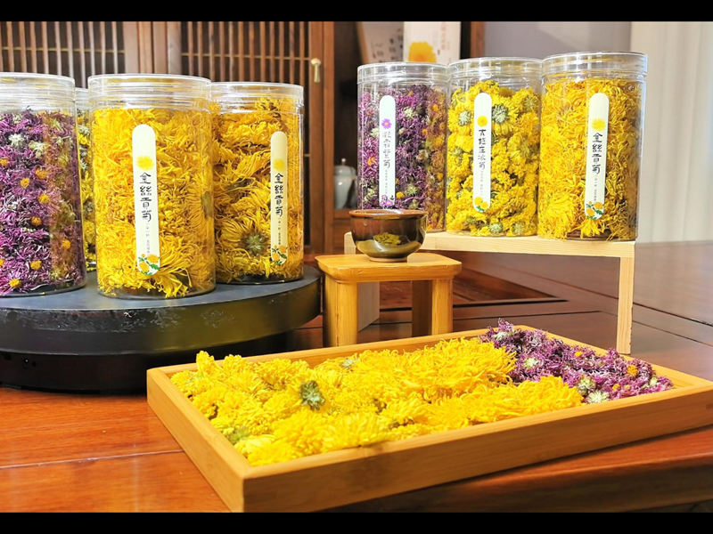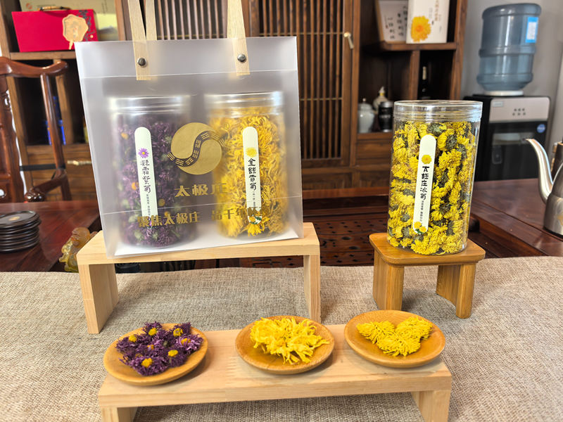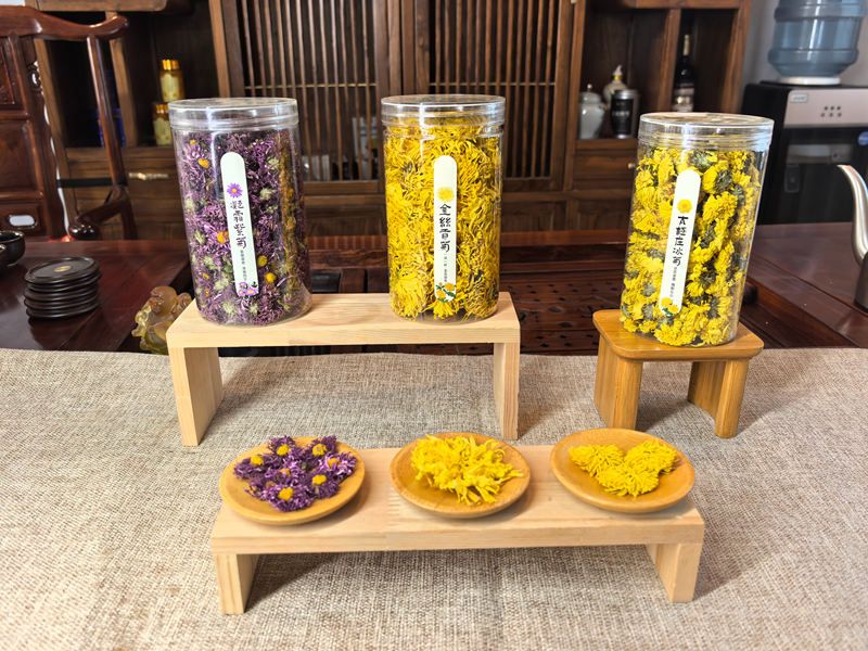 金絲貢菊(桶裝)、凝霜紫菊(桶裝)、太極莊冰菊(桶裝)